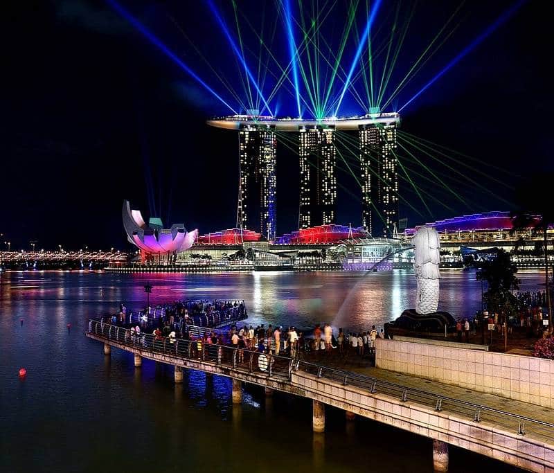 - 9:00 PM: Second show; photographers might move to the promenade or Helix Bridge for a different foreground.